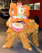 The Chinese Lion Dance has a tradition in China dating back a few thousand years. There are numerous versions as to its origin, but the most popular and obvious reason is that the Chinese needed something for protection, to give them good luck, prosperity, health, longevity and blessing. These objectives and concepts gave birth to Feng Shui and subsequently the Chinese Lion and Dragon. To empower the Chinese Lion to do it duty, it is brought to life by the process of 'dim jing' or dotting the lion. This process involves a ceremony in front of a Daoist or Confucianist alter, usually on an auspicious day. However this tradition is not usually followed in the West as most kung fu schools do not even have a full time gym or place. Some have no idea how to perform the ceremony as they are not spiritually trained to do so. There are different versions of 'Dim Jing' Some translated it as dotting the lion's eyes, which is quite incorrect, as it is not just the eyes being 'dim'. Nevertheless it is their 'way' of bringing the Lion to life. The spiritual ceremony starts by placing the new lion costume in front of the alter. An example of such an alter may sit Kuan Yin (Guan Yin), Chai Tin Tai Sing (Monkey Sage) to her right and Kwan Kung (Gwan Gung) to her left. Kwan Kung sits on the 'Left Green Dragon' side, which represents the peaceful side, while the Monkey Sage sits on the 'Right White Tiger' side, which represent the warrior side. The alter will have been prepared and fresh tea and fruits replace the old. Nine joss-sticks will be lighted to invoke the deities sitting on the alter. If it is a Kwan Kung Lion to be dotted, it is natural to invoke Kwan Kung to perform the dim jing. The drum will be softly rolling together with the clashing of the cymbals and hitting of the gong. To do that cinnabar powder (jee sa or red pearl sand) soaked in water will be used. The master will dip the bamboo brush into the jee sa and dot the mirror on the front of the lion's head to give its initial spiritual essence . This is known as the 'third eye'. The brush then dot the 'nose' to bring it to life so that it can breathe, which is followed by the inside of the mouth, which will open slowly as it starts to breathe. The 'ears' comes next followed by the 'eyes' 'head' 'neck' 'body' 'tail' and finally the 'limbs' Initially the Lion moves slowly as it recovers its stances and balances. The music grows louder as the lion comes to live. It then pays homage to the dieties by giving three bows; the first to the left (Green Dragon), the second to the right (White Tiger) and the third to the centre. Then it performs the routine of eating the greens (chian) and spilling them out in three directions. The traditional Lion is usually referred either as a Kwan Kung (Guan Gung), Lau Bei (Liu Bei) or Cheong Fei (Zhang Fei) Lion. Kwan Kung will be denoted by a red costume, Lau Bei by a mixed-coloured and Cheong Fei by a black costume. The Cheong Fei lion is a 'fighting lion', but this is now shunned in favour of a Kwan Gung, Lau Bei, Chew Tzu-Lung (either a Green or Blue costume), Silver or Gold Lion. |