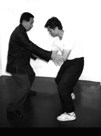 Sijo Chee showing Yap Leong how to do proper chi sau (sticky hands) and take-down |